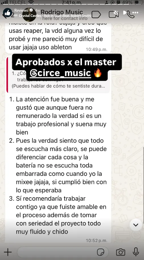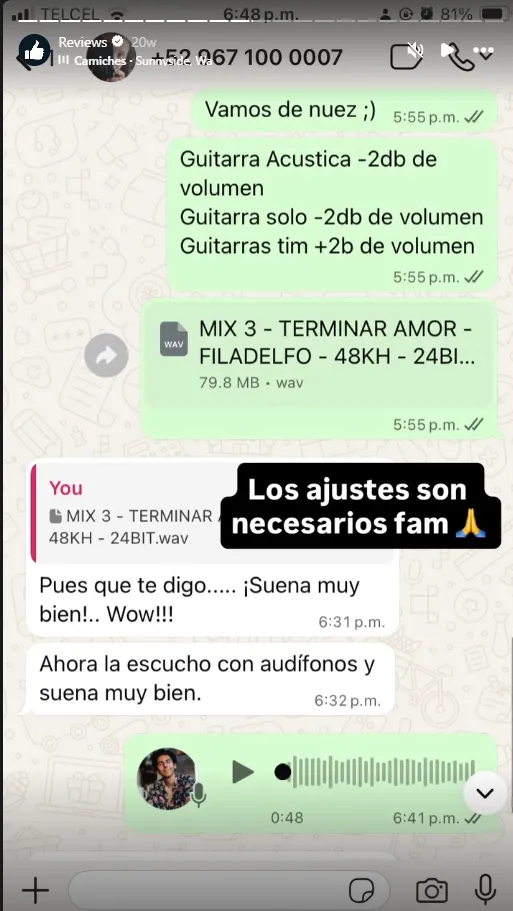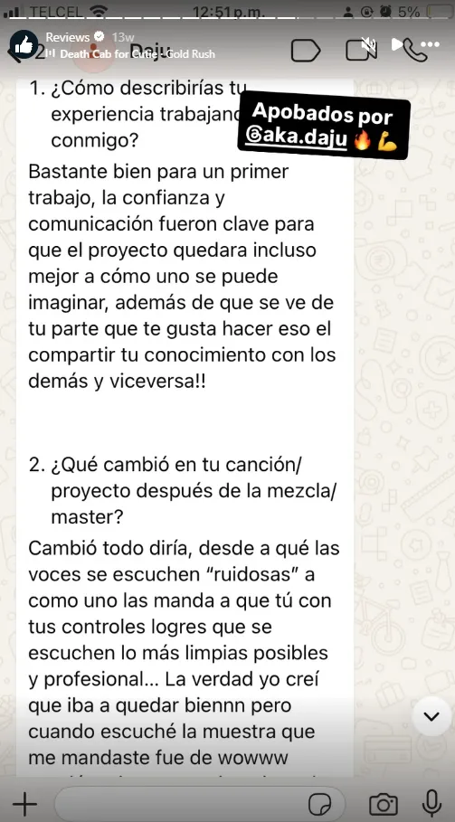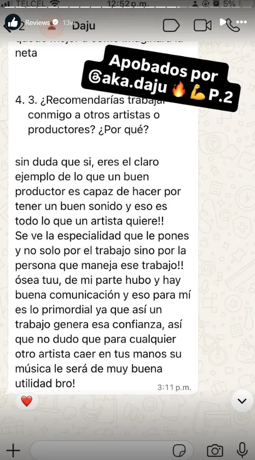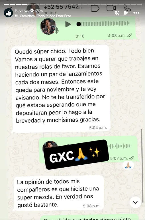 De ahí, te dire cuando tendría lista la rola, aproximadamente tardo entre 4 y 6 días, pero como ya hay personas que me mandaron sus canciones antes, hago una “lista de espera” y ya te doy una fecha exacta.