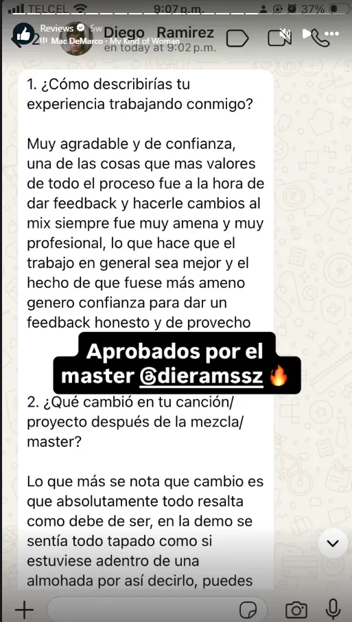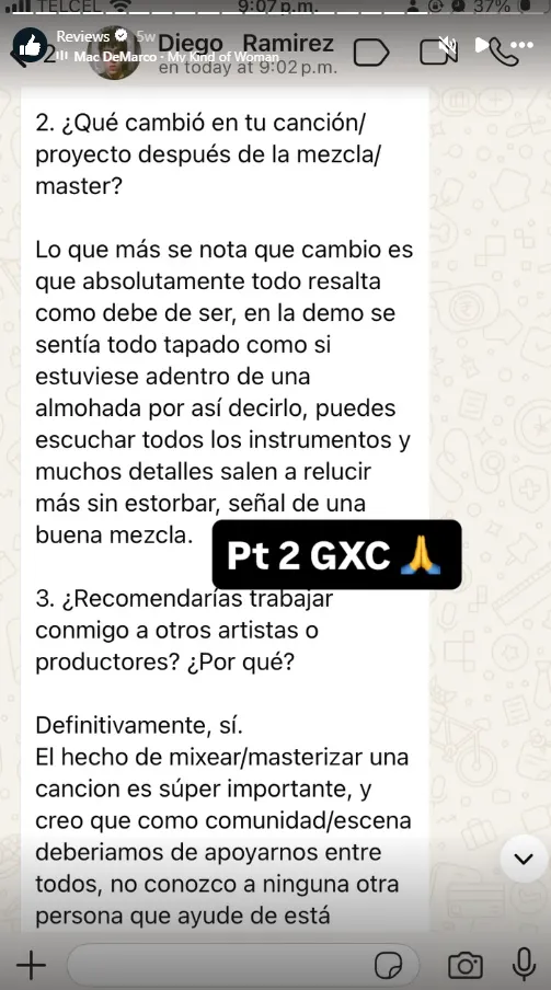 Acá te dejo buenos ejemplos de otros artistas que han pasado por este mismo proceso y que si decedimos trabajar juntos yo esperare que me puedas mandar algo como esto.