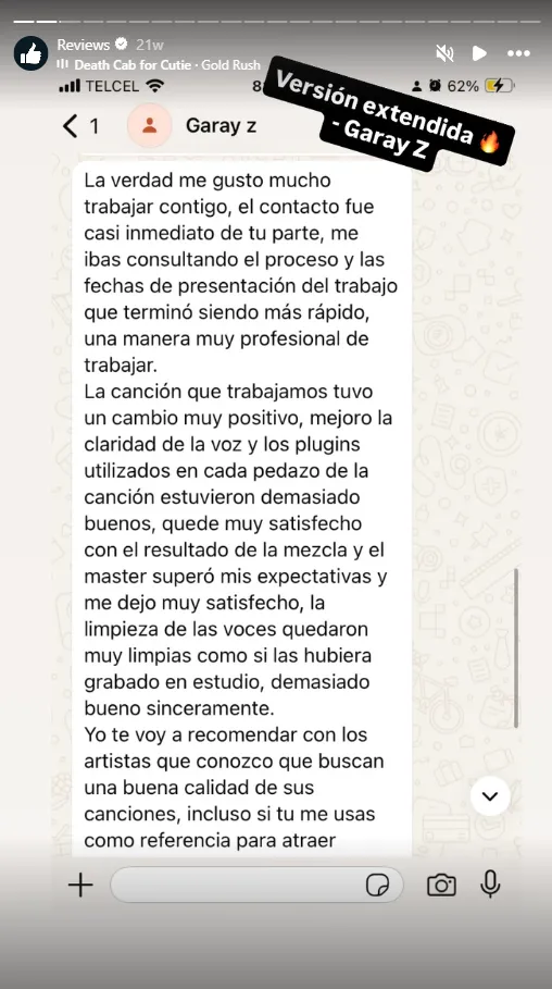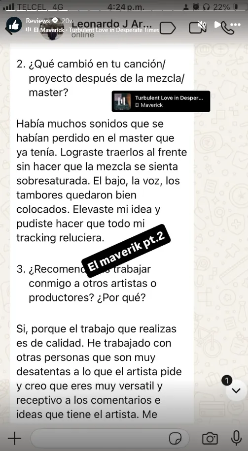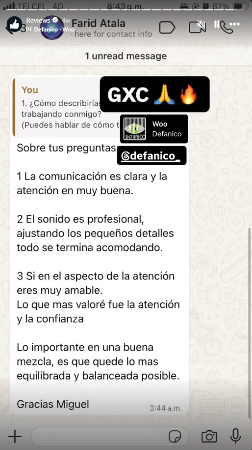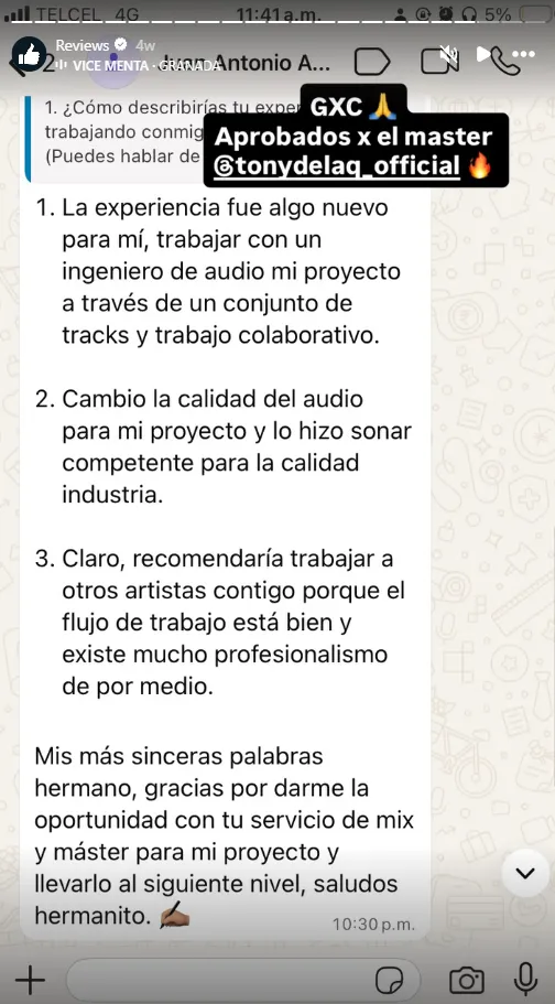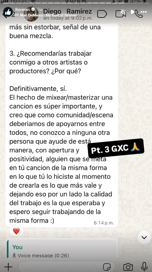 Soy ingeniero en mezcla y llevo casi 3 años ayudando a artistas de mi ciudad a grabar y mezclar sus canciones.